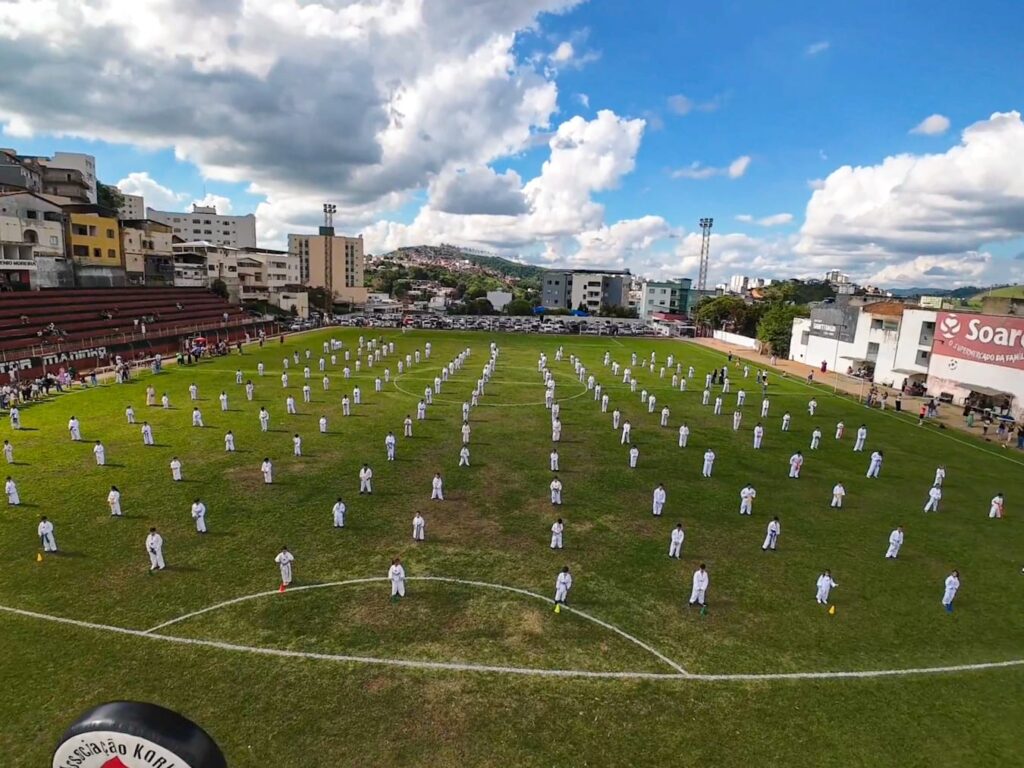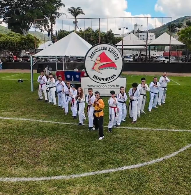 A Associação Korion de Desportos encerra o ano de 2025 realizando seu exame de faixa Preta e colorida também onde na parte da manhã na Academia Cindra Gold Team a Banca Examinadora da Federação de Tae Kwon-Do do Estado de Minas Gerais, composta pelo Grão Mestre Martinho Francisco Alvarenga, faixa Preta 8º DAN Internacional, também o Grão Mestre Marcelo Cardozo, faixa Preta 7º DAN e Mestre Agnaldo Lúcio, faixa Preta 6º DAN sendo avaliados os alunos Valentina Oliveira Costa, Arthur Ryan Fagundes de Sousa, Davi Guin Santos, Augusto Genelhu Tassar e Francisco Ermelindo dos Santos Barbosa avaliados para Faixa Preta 1º DAN e Max William Ribeiro Barcelos que foi avaliado para 2º DAN. No período da tarde aconteceu nas dependências do Esporte Clube Caratinga, no campo de futebol a solenidade de entrega de faixa aos alunos da Korion que foram avaliados no mês de dezembro contando com aproximadamente 250 alunos que receberam suas novas graduações entregues pelos seus familiares. A Korion aproveitou o evento para encerrar a Gincana Educacional 2025 que teve como apoiadores o Sicoob Credileste Caratinga, Soares Supermercados, Zafira Joias, Dr Bruno Salvato, Nim Doboks e Studio Ferraz Fotografias e com classificação definida assim: 25º até o 10º lugar receberam uma mochila escolar doadas pelo Dr Bruno Salvato, os alunos Matheus Pagoto Franco, Alexandre Santiago R Silva, Francisco Marcos Ribeiro de Melo, Emanuel de Freitas Moura, Felipe Emanuel Evangelista Hemerick, Rafael Salgado Barros, Pedro Menezes Gama, Larissa Rosa Correa, Maria Clara Tiola, Maria Eduarda Ribeiro Alves, Sophia Rodrigues Azevedo, Aurora Eduarda Pereira da Silva, Maria Júlia Lopes Oliveira, Murillo Augusto Gomes Cassiano, Lucas Gabriel Rodrigues da Silva e Rafael Jaime de Freitas; em 9º a 7º lugares receberam um Dobok Olimpic doados pela NIM Doboks os alunos: Joaquim Salvador Moises Neto. Miguel Alves Neves e Davi Luis Ferreira Gomes. Em 6º lugar doado pela Zafira Jóias o aluno Heitor Nascimento Costa recebeu um relógio de ultima geração. Os alunos em 4º e 5º colocados receberam uma fritadeira elétrica doadas pelo Soares Supermercado e Drogaria Soberana Arthur Ryan Fagundes de Sousa e João Renato Ferreira Anacleto. Em 3º lugar a aluna Ana Julia de Silva Lopes recebeu um Voucher de álbum de fotografias proporcionado pelo Studio Ferraz do meu amigo Renato Ferraz. Finalizando os grandes vencedores cada um com um Cheque Poupança no valor de R$ 1.000,00 (Hum mil reais) doados pelo Sicoob Credileste Caratinga os alunos Davi Luiz Gomes Teixeira e Arthur Genésio Medeiros Freitas. “A Korion se preocupa muito com as questões familiares e a Gincana Educacional tem este papel importante na vida dessas famílias e não somente os prêmios mas sim é um momento de total interação familiar onde ao longo do ano fazemos campanhas sociais com total empenho dos membros familiares como Agasalho Solidário, Alimento Solidário e Natal Solidário, assim como o Fest Family que consiste em brincadeiras entre os familiares, Desafio Gourmet e através de questionários escolares e familiares que são pontuados para ao final do ano a somatória desses pontos se consegue o campeão e demais colocações, ou seja estamos o ano todo fazendo com que o aluno se empenhe em melhorar notas escolares, comportamento familiar e social para que consiga chegar ao fim do ano e ganhar um prêmio, e nada disso seria possível se os apoiadores não pudessem nos doar os prêmios e este ano de 2025 o Sicoob Credileste Caratinga, Soares Supermercados, Studio Ferraz, Zafira Jóias, Dr Bruno Salvato, NIM Doboks, Academia Cindra Gold Team e Esporte Clube Caratinga, Prefeitura Municipal de Caratinga através do Departamento de Esportes pois sem a cessão dos palco e som seria muito difícil, assim como o senhor Edgar Martins por nos apoiar cedendo o Campo Caratinga, ao qual quero deixar aqui nossos fraternos agradecimentos e dizer que eles fizeram grande importância na vida de cada família aqui resente.” salientou com muita emoção Grão Mestre Marcelo Cardozo, faixa preta 7º DAN e Presidente da Korion. No exame estiveram presentes as seguintes personalidades: Mestre Internacional Vinícius Castelo Branco – Presidente da Federação de Tae Kwon-Do do Estado de Minas Gerais e faixa Preta 4º DAN Internacional, ábitro Internacional, Grão Mestre Internacional Martinho Francisco Alvarenga, Vice Presidente da Federação de Tae Kwon-Do do Estado de Minas Gerais e também faixa Preta 8º DAN Internacional, a Sra. Ioná Cecília, Diretora Financeira do Esporte Clube Caratinga que representou o Sr Edgar Martins – Presidente do Esporte Clube Caratinga, Sra. Alessandra Miranda Fidelis, Coordenadora do Tempo Integral/Escolinhas da Escola Expoente, Sr. Dayvid Tionas, Superintendente de Esportes de Caratinga, Chirley Almeida que representou o Soares Supermercado, Célio Campos Arreguy, Conselheiro do Sicoob Credileste Caratinga que representou o Sicoob Credileste e fez a entrega dos cheques Poupança, Manoel Eduardo, proprietário da Zafira Joias, e também os representante das entidades que receberam os presentes da Campanha Natal Solidário que foram a Cantina Aurea, Cantina Rainha da Paz, Djalma, AMAC, Conferência Nossa Senhora da Divina Providencia e Centro Espirita Bezerra de Menezes que totalizaram 1.500 presentes que serão distribuidos aos seus assistidos. “Boa tarde a todos! É uma honra representar o presidente do Clube Caratinga, Sr. Edgar Martins, e toda a diretoria nesta cerimônia de troca de faixa do Tae Kwon-Do. Este esporte, além de desenvolver força, técnica e disciplina, ensina valores essenciais como respeito, autocontrole e superação — princípios que levam cada aluno muito além do tatame. Hoje celebramos o esforço, a dedicação e o merecimento de cada um desses jovens, que demonstraram comprometimento e evolução constante. Vocês são motivo de orgulho para suas famílias, para o Grão Mestre Marcelo 